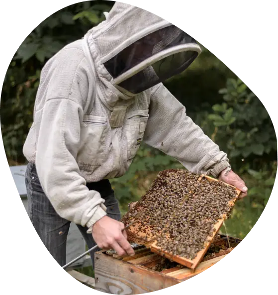 Dès mes premières ruches, j'ai fait le choix de conduire des colonies d’abeilles noires. Endémique de l’Europe de l’Ouest et possédant des écotypes adaptés aux différents terroirs qu’elle habite, l’abeille noire est une race rustique qui bénéficie d’une diversité biologique remarquable. C'est cette rusticité qui m'intéresse à la Ferme de la Penoue, et ce à tous les niveaux. Les vaches nantaises, les abeilles noires, les blés paysans... ils sont capables de s'adapter à notre terroir et aux aléas climatiques.